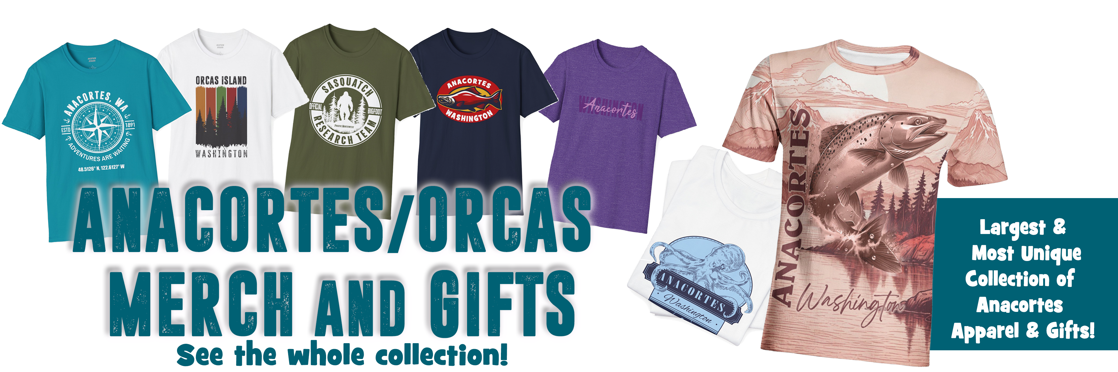 SHOP LOCAL! FAST TURNAROUND! AVAILABLE IN STORE, ON TEES, HOODIES, TOTES, KEYCHAINS, MAGNETS AND MORE! 7TH & COMMERCIAL AVE, ANACORTES