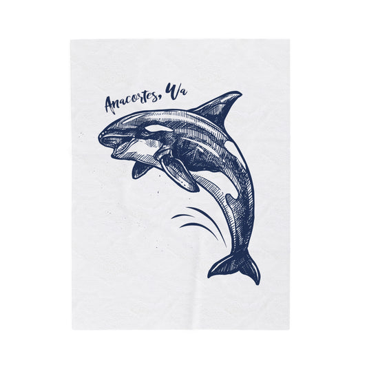 Anacortes Orca Sketch Velveteen Plush Blanket