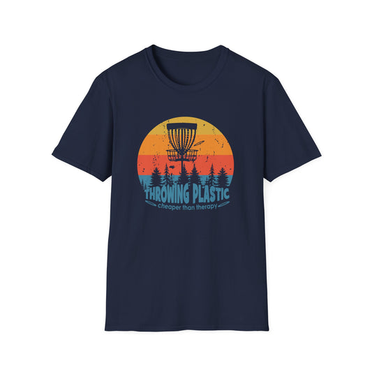 THROWING PLASTIC IS MY THERAPY - DISC GOLF Unisex Softstyle T-Shirt