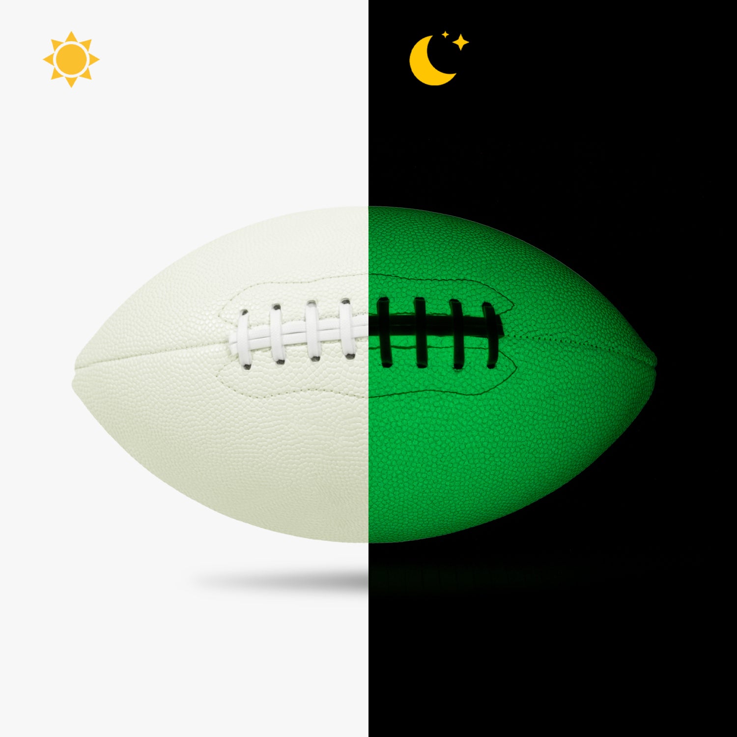 ✅ Produced with premium space leather base and PU leather fabrics, and processed with an attractive luminous effect, the textured surface could offer a better exceptional grip and control, and durability, available to be used for football teams, clubs, etc. It's also the best game souvenir, coach's gift, which could be way more highlighted in the dark place.