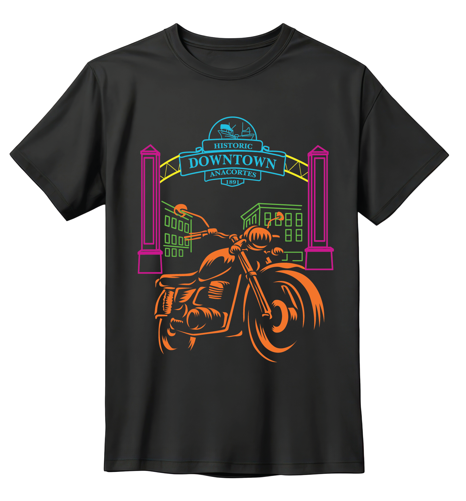 ANACORTES - NEON MOTORCYCLE DOWNTOWN SHIRTS & MORE!