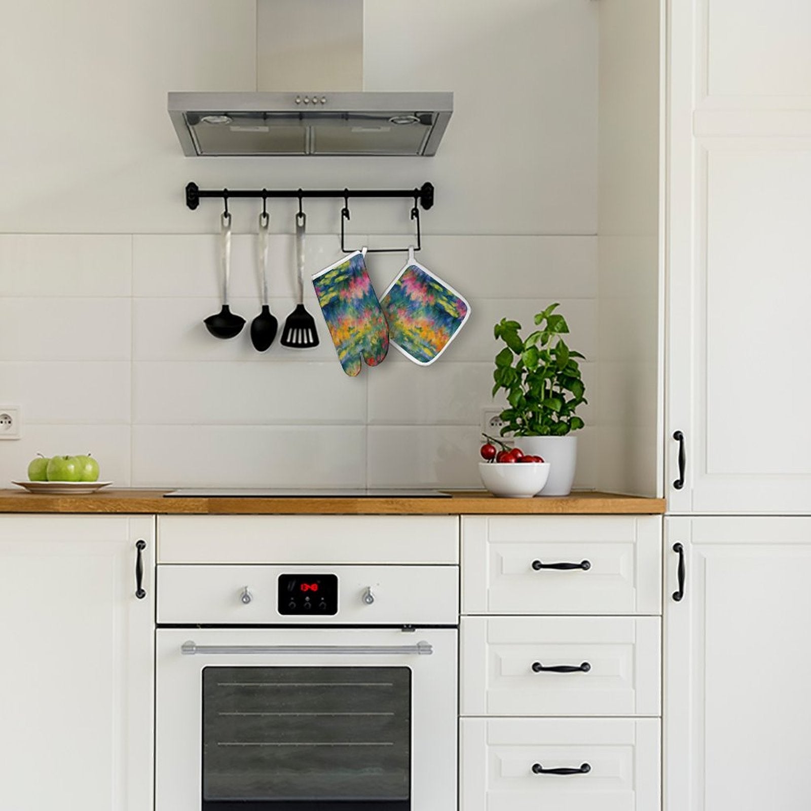 - Product Performance: The Oven Mitt Set is a necessity for each house. This practical heat-resistant Oven Mitt Set includes a Oven Mitt and a Pot Holder for daily kitchen use. With a hanging loop, the Oven Mitt Set is easy to clean and dry when it is not in use. Printed with stylish pattern, this distinctive Oven Mitt and a Pot Holder will decorate your kitchen and brighten your mood each day. The Oven Mitt Set is a practical gift for your friends on different festivals and occasions, like house decoration, housewarming parties and birthday parties.