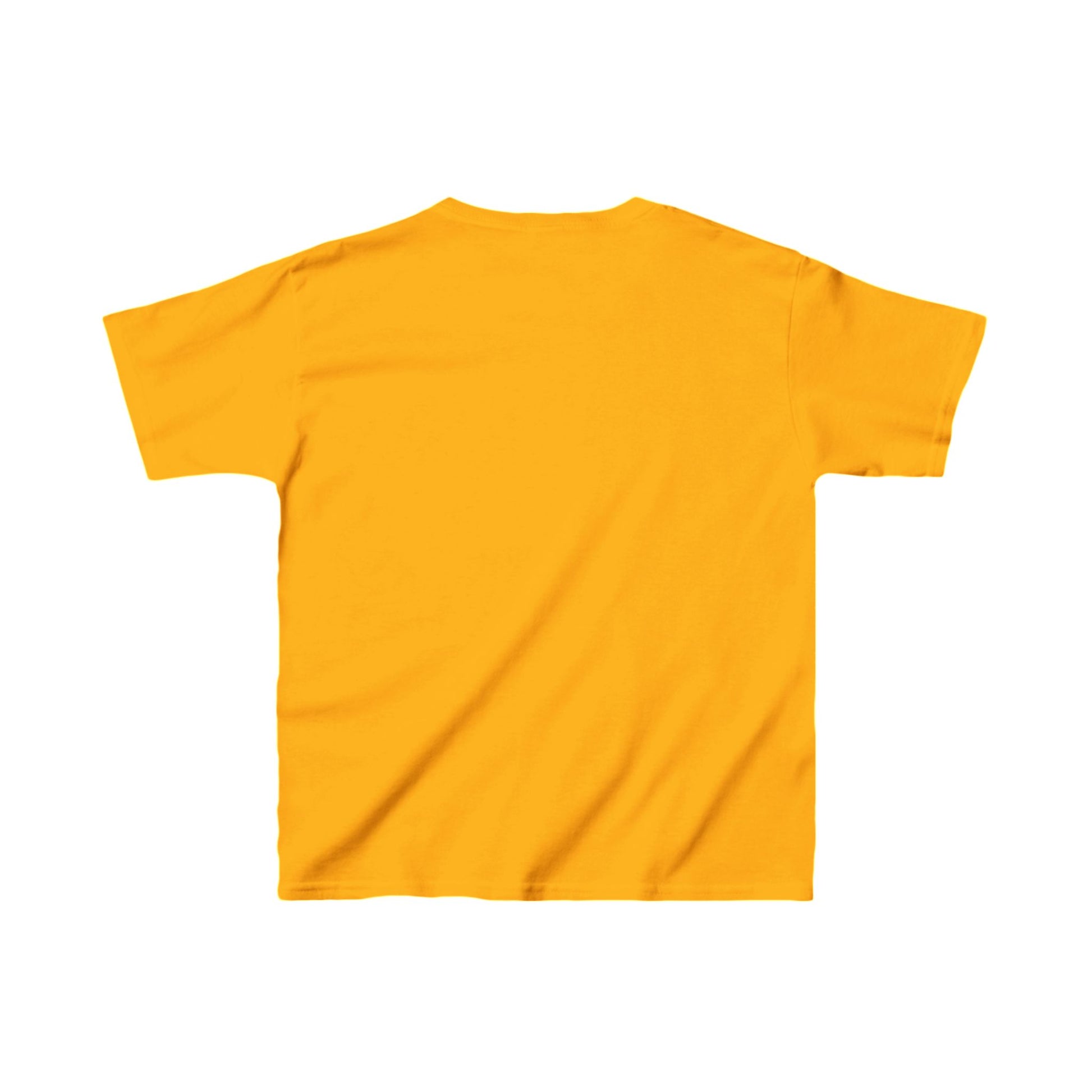 The kids heavy cotton tee is perfect for everyday use. The fabric is 100% cotton for solid colors. Polyester is included for heather-color variants. These fabrics are prime materials for printing. The shoulders have twill tape for improved durability. The collar is curl resistant due to ribbed knitting. There are no seams along the sides.